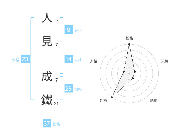 人見 成鐵さんを姓名の画数から五運を鑑定