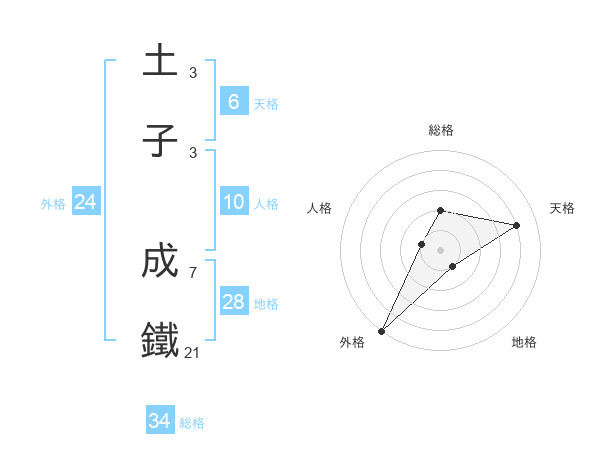 土子 成鐵さんの総格は34画の2点!
