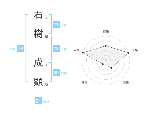 右樹 成顕さんを姓名の画数から五運を鑑定