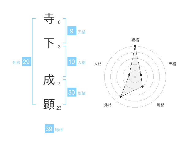 寺下 成顕さんの総格は39画の5点!