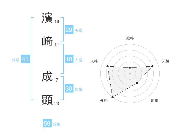 濱﨑 成顕さんの総格は59画の1点!