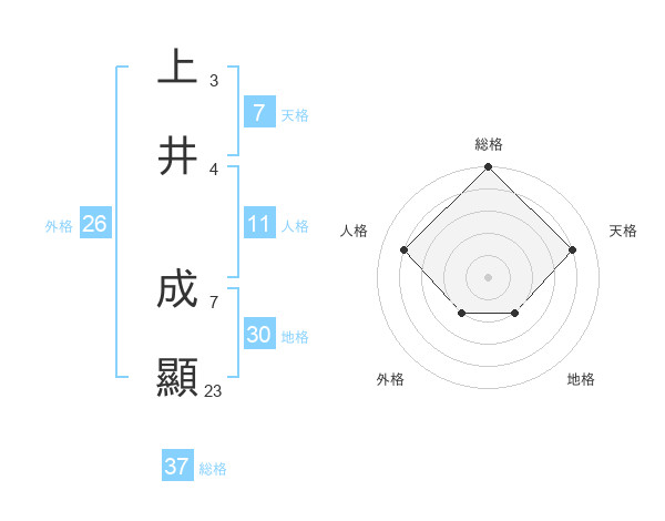 上井 成顯さんの総格は37画の5点!