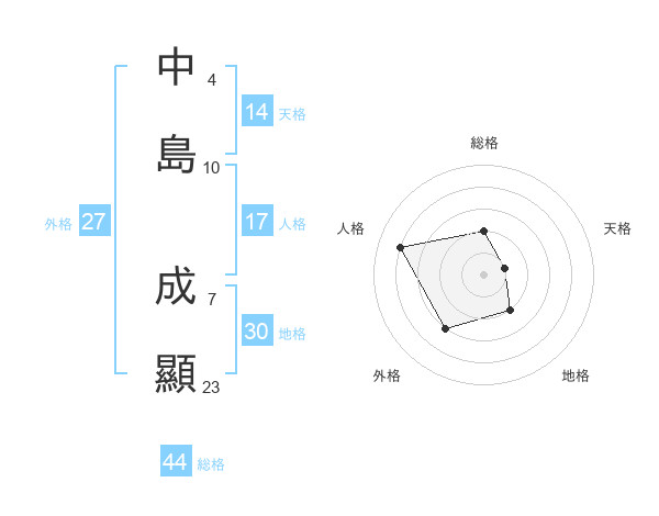 中島 成顯さんの総格は44画の2点!