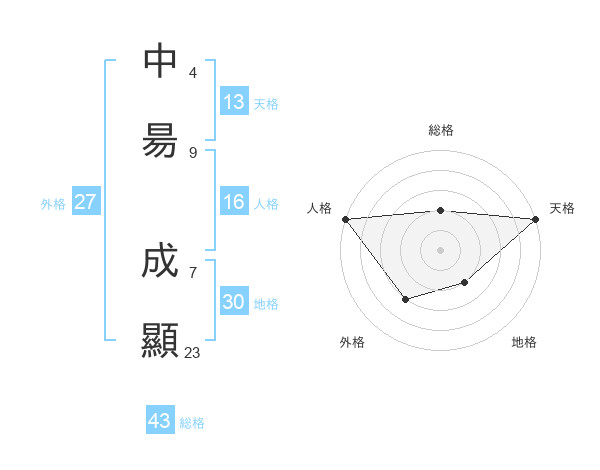 中昜 成顯さんを姓名の画数から五運を鑑定
