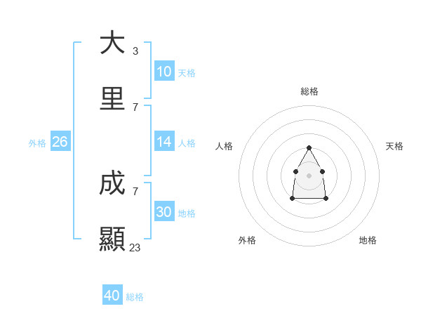 大里 成顯さんの総格は40画の2点!