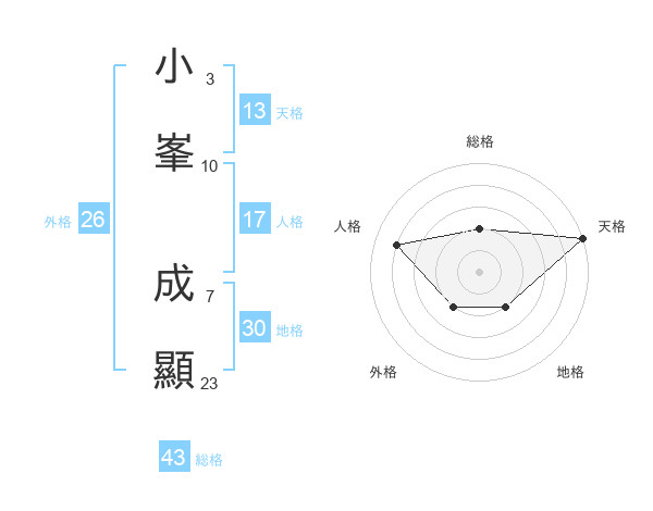 小峯 成顯さんの天格は13画の5点!