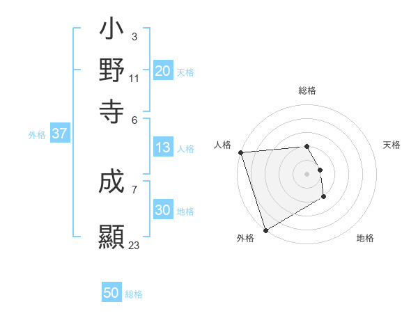 小野寺 成顯さんを姓名の画数から五運を鑑定