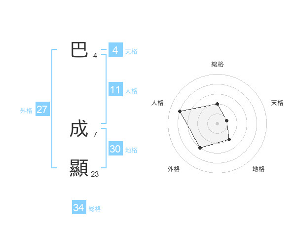 巴 成顯さんの地格は30画の2点!