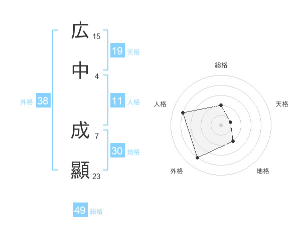 広中 成顯さんの総格は49画の2点!