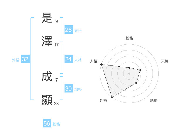 是澤 成顯さんの外格は32画の5点!