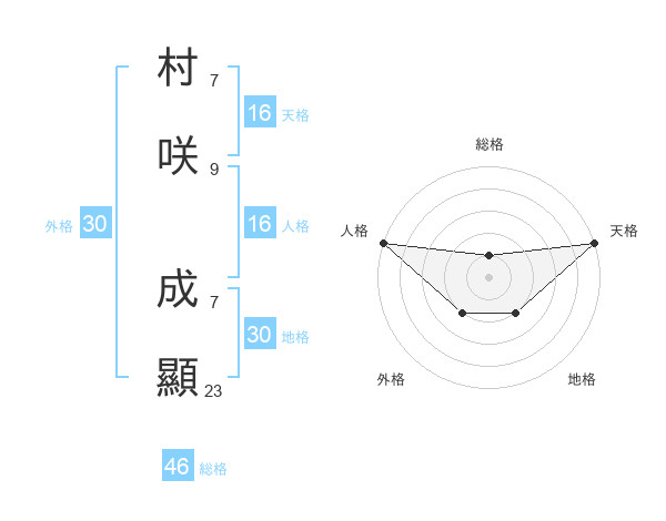 村咲 成顯さんの外格は30画の2点!