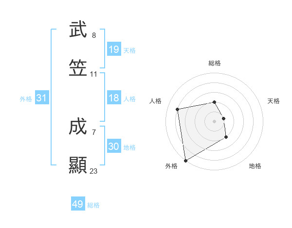 武笠 成顯さんの総格は49画の2点!