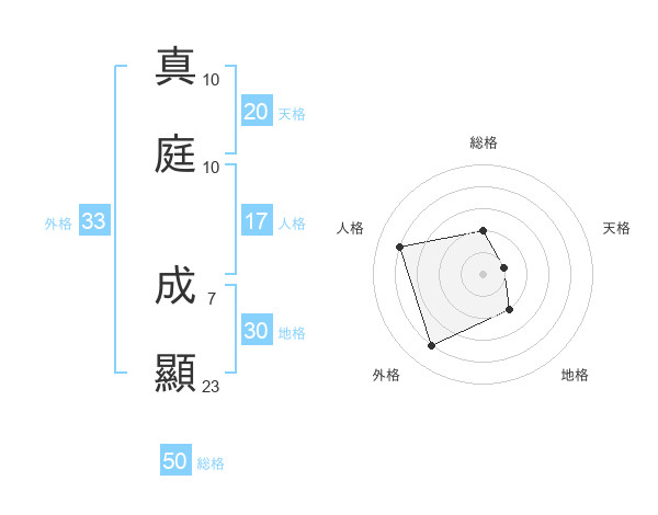 真庭 成顯さんを姓名の画数から五運を鑑定