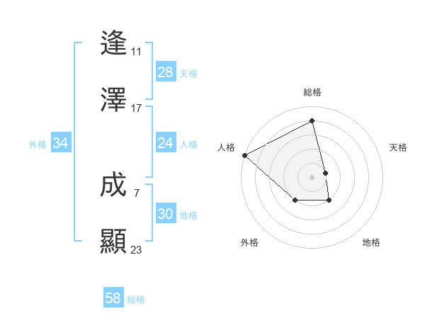 逢澤 成顯さんの総格は58画の4点!