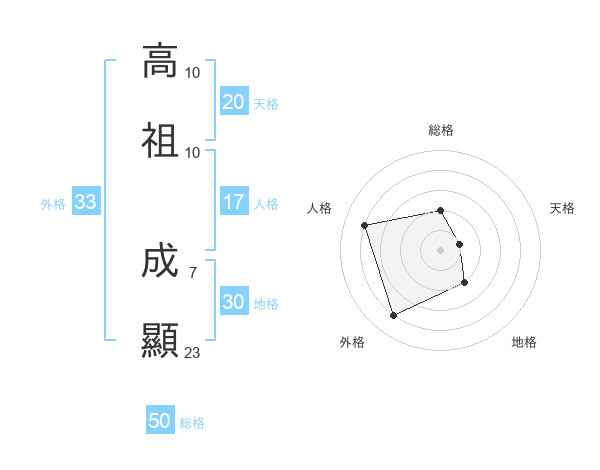 高祖 成顯さんの総格は50画の2点!