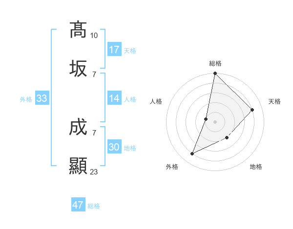 髙坂 成顯さんの総格は47画の5点!