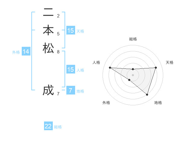 二本松 成さんの天格は15画の4点!