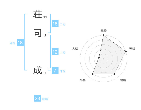 荘司 成さんの総格は23画の5点!