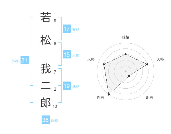 若松 我二郎さんを姓名の画数から五運を鑑定