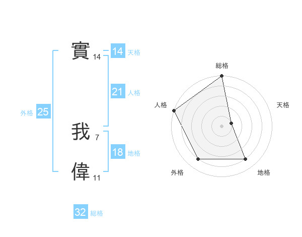 實 我偉さんの総格は32画の5点!