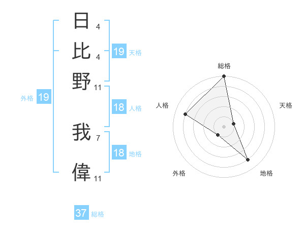 日比野 我偉さんを姓名の画数から五運を鑑定