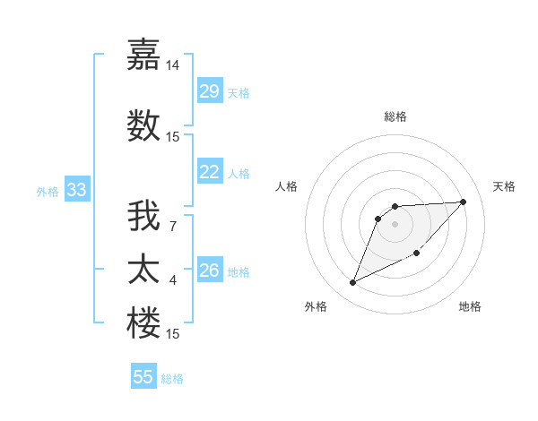 嘉数 我太楼さんを姓名の画数から五運を鑑定