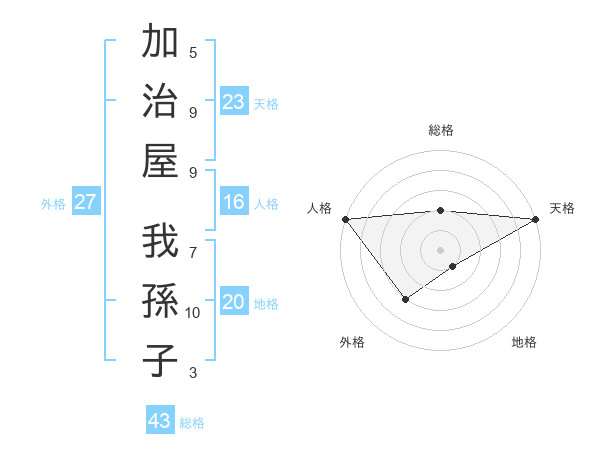加治屋 我孫子さんを姓名の画数から五運を鑑定