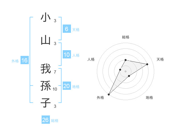 小山 我孫子さんの天格は6画の4点!