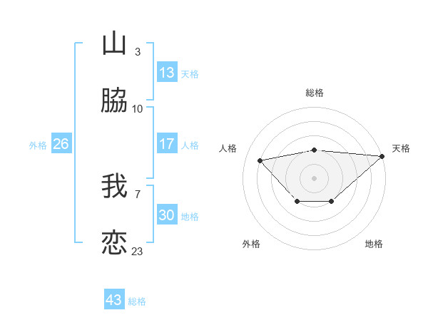 山脇 我恋さんを姓名の画数から五運を鑑定