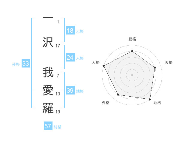 一沢 我愛羅さんを姓名の画数から五運を鑑定
