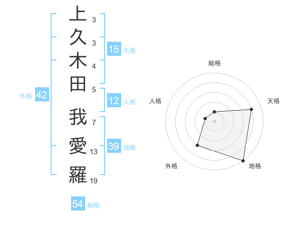 上久木田 我愛羅さんを姓名の画数から五運を鑑定