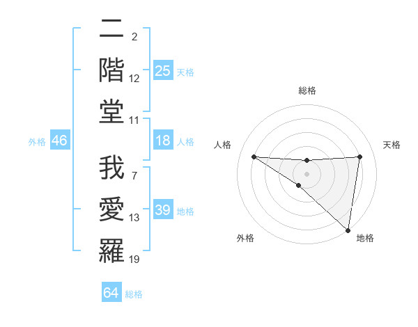 二階堂 我愛羅さんを姓名の画数から五運を鑑定