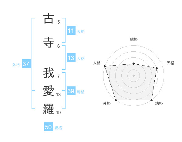 古寺 我愛羅さんの外格は37画の5点!