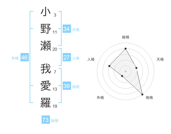 小野瀬 我愛羅さんを姓名の画数から五運を鑑定