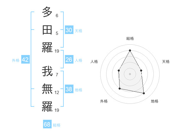 多田羅 我無羅さんの総格は68画の4点!