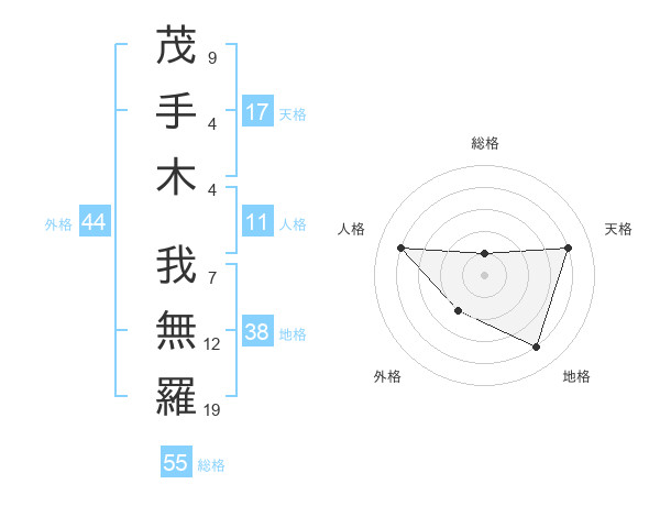 茂手木 我無羅さんを姓名の画数から五運を鑑定