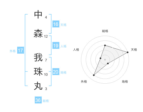 中森 我珠丸さんを姓名の画数から五運を鑑定