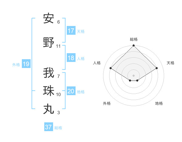 安野 我珠丸さんを姓名の画数から五運を鑑定