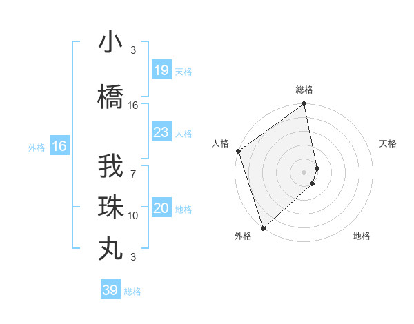 小橋 我珠丸さんを姓名の画数から五運を鑑定