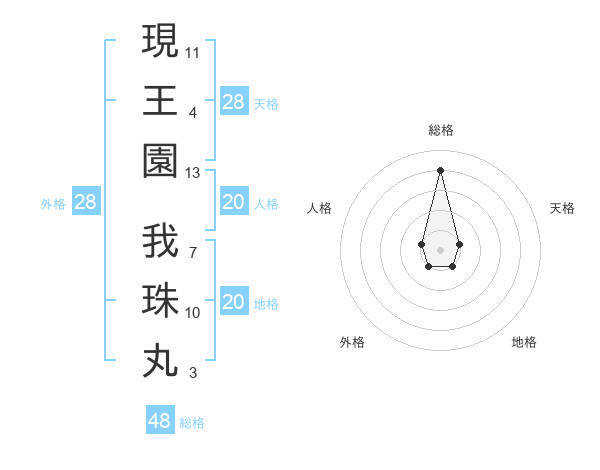 現王園 我珠丸さんの総格は48画の4点!
