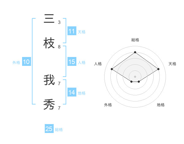 三枝 我秀さんを姓名の画数から五運を鑑定