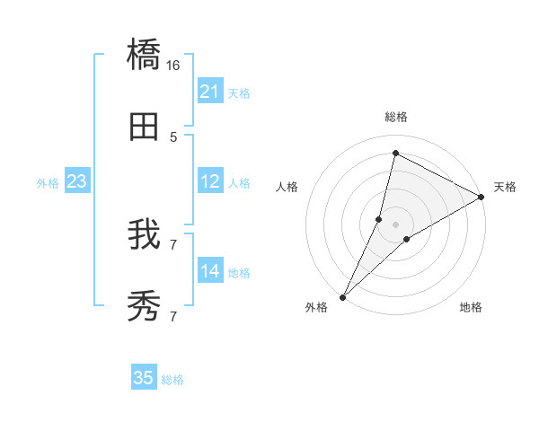 橋田 我秀さんを姓名の画数から五運を鑑定