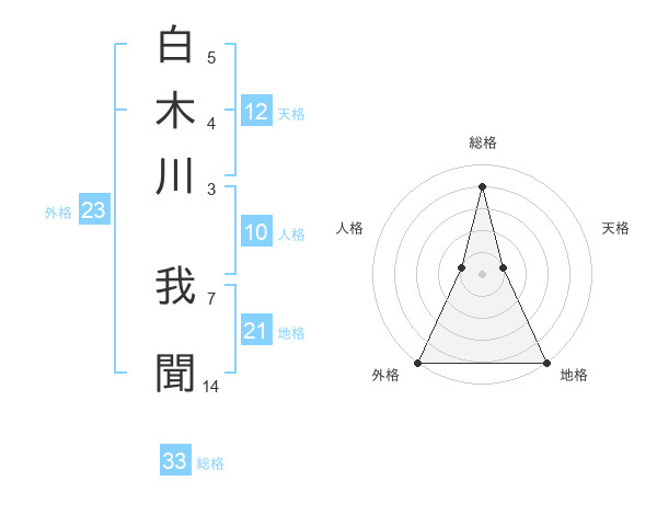 白木川 我聞さんを姓名の画数から五運を鑑定