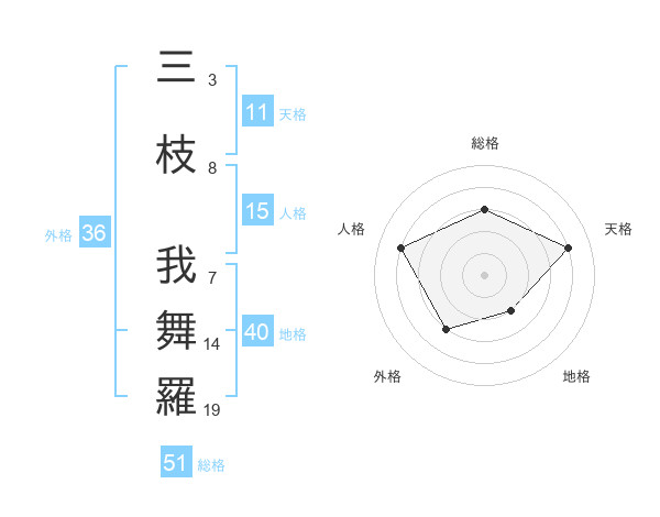 三枝 我舞羅さんを姓名の画数から五運を鑑定