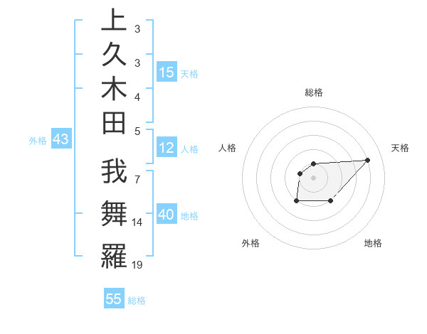 上久木田 我舞羅さんを姓名の画数から五運を鑑定