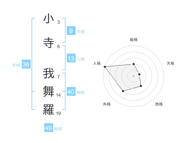 小寺 我舞羅さんを姓名の画数から五運を鑑定