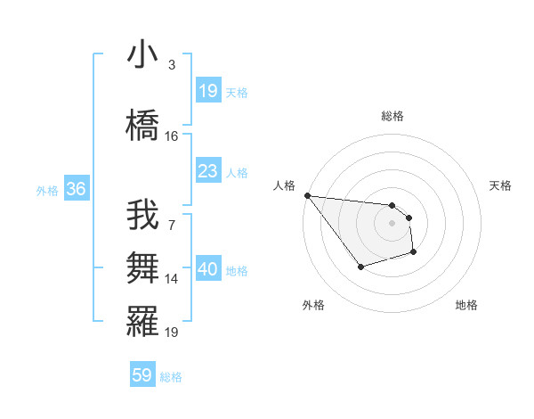 小橋 我舞羅さんを姓名の画数から五運を鑑定