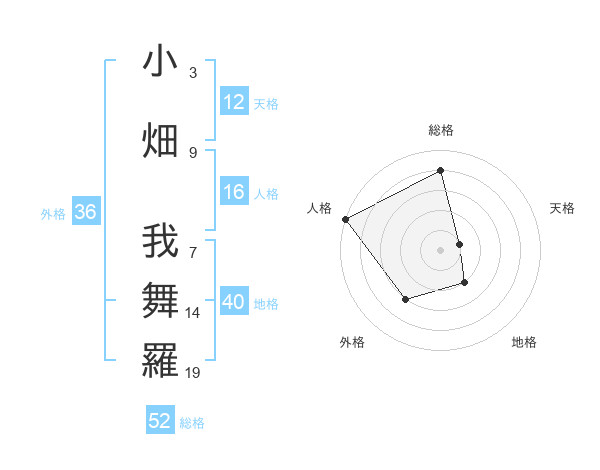 小畑 我舞羅さんを姓名の画数から五運を鑑定
