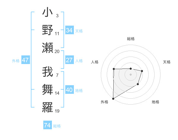 小野瀬 我舞羅さんを姓名の画数から五運を鑑定