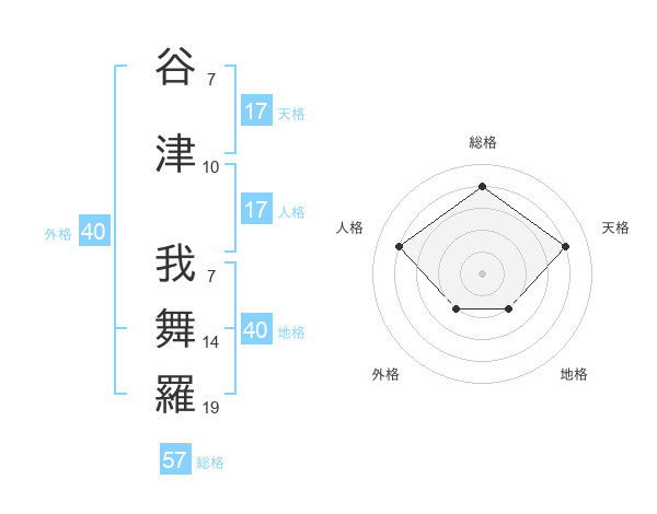 谷津 我舞羅さんの天格は17画の4点!